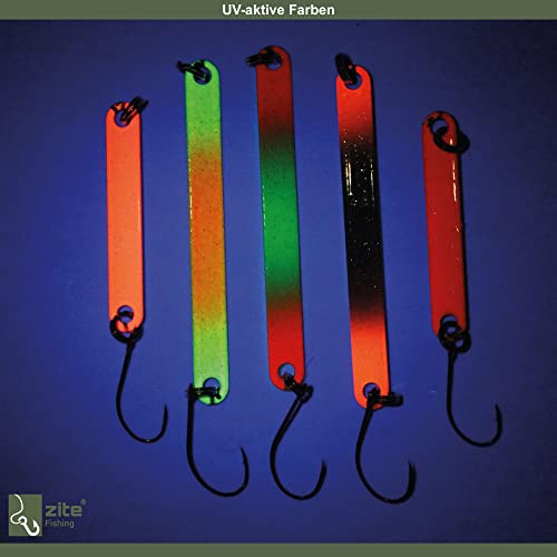 Esche attive ai raggi UV: anche se il tempo è peggiore e l'acqua dovesse essere, queste esche per trote sono laccate attivamente ai raggi UV e stimolano ulteriormente il pesce.
