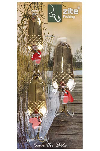 Zite Fishing - Set di 3 esche artificiali, luccioperca, pesce persico e spinning, colore: oro, 16-34 g