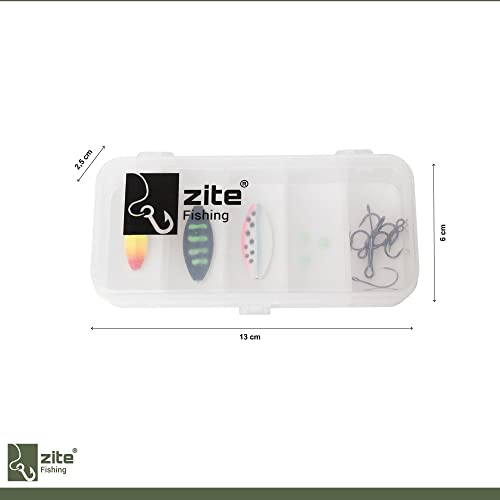 Scatola per esche con incluso: per l'ordine tra i trout spoons c'è la scatola per esche da pesca adatta direttamente con esso. La scatola misura 13 x 6 x 2,5 cm.