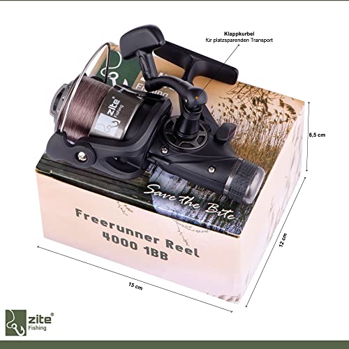 Zite Mulinello da pesca con filo monofilo marrone 0,30 mm - Freerunner Reel 4000 1BB - carpa luccioperca anguilla