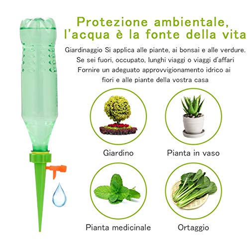 Facile da installare: innaffiatore automatico per vasi ha anche un lungo ago che consente di praticare fori sul fondo della bottiglia o tagliare la coda della bottiglia. Quindi semplicemente avvitare la punta sulla bottiglia piena d'acqua e inserire la punta direttamente nel terreno vicino al gambo della pianta in vaso.