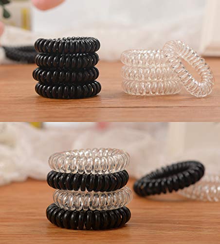 ZITFRI 16 Pcs Elastici per Capelli Elastici a Spirale per Capelli Elastico Capelli Invisibobble Neri e Trasparenti