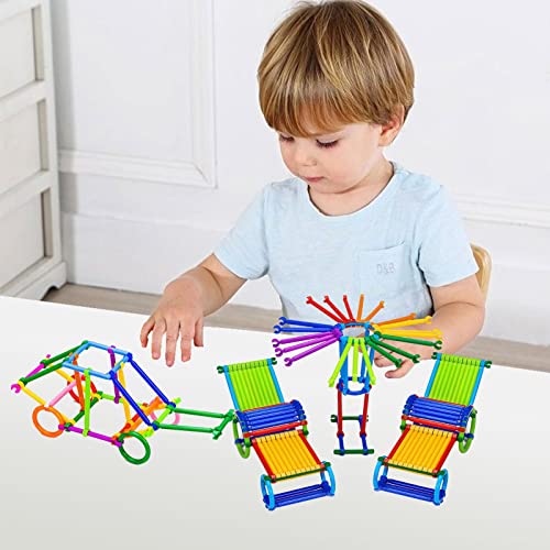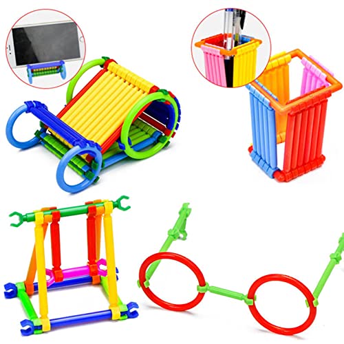 Ziurmut Blocchi per Bambini,250 Bastoncini da Costruzione per ingegneria Edile - Giocattolo educativo per Tubi di Collegamento matematico per Bambini, Centro dello Stelo di cannucce da Costruzione