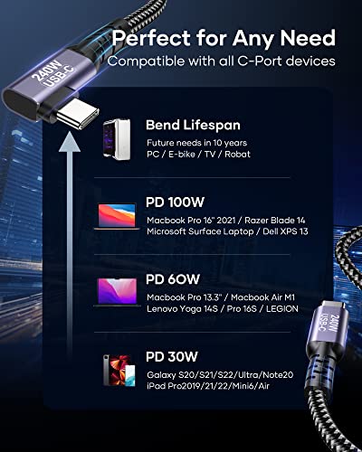 Ziwodiv Cavo USB C a USB C 240W, 48V/5A Cavo Type c to Type C 90 Gradi, PD3.1 Cavetto USB Tipo C con MacBook Pro/Air M2/M1, Pro/Air/Mini, Xiaomi, OnePlus 9, Galaxy S22 S21, Huawei Mate 40(2M)