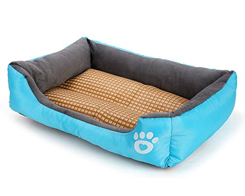 ZiXing Cuccia per Gatti e Cani di Taglia Piccola/Media/Grande, Rettangolare, Imbottita e Ultra Morbida, Lavabile in Lavatrice Blu M