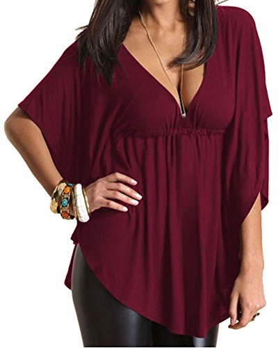 ZiXing T Shirt Donna Estate Eleganti Taglie Forti Camicia V Scollo Casual Manica Corta Maglietta Puro Colore Sciolto Top Bluse