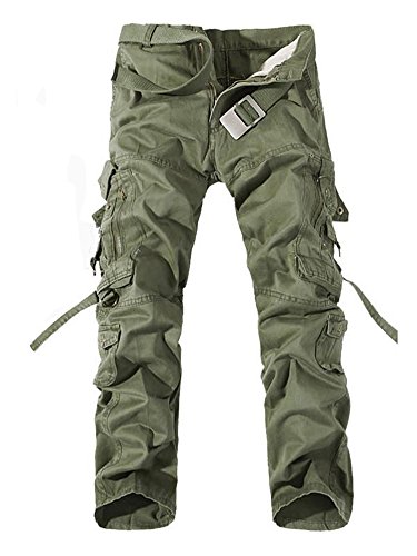 ZiXing Uomo Carico Pantaloni con Multi Tasche Lungo Cargo Pantaloni Pantalone da Lavoro Outdoor Army Green 38