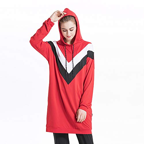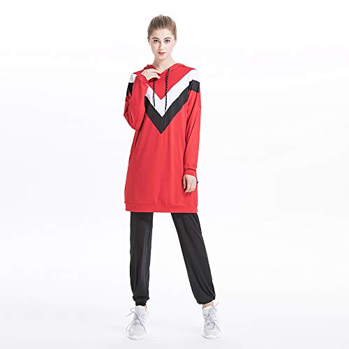 Ziyimaoyi - Tuta da donna con cappuccio, stile casual, per Jogging Musulmane, a maniche lunghe rosso M