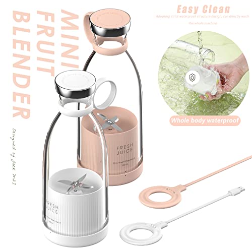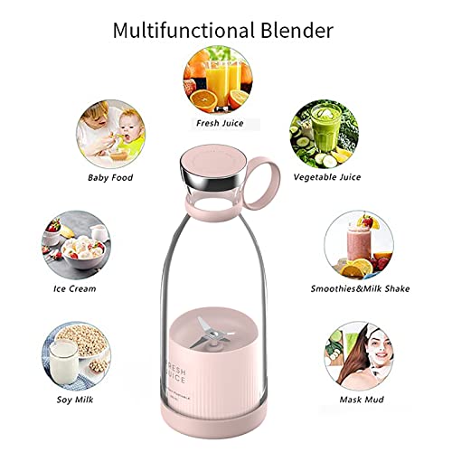ZIYO Mini Frullatore Portatile, Frullatore per Smoothie Frutta di Dimensioni Personali, Bottiglia Frullatore Portatile per Frullati,Mixer Smoothie Maker con USB Ricaricabile,350 ml,Rosa