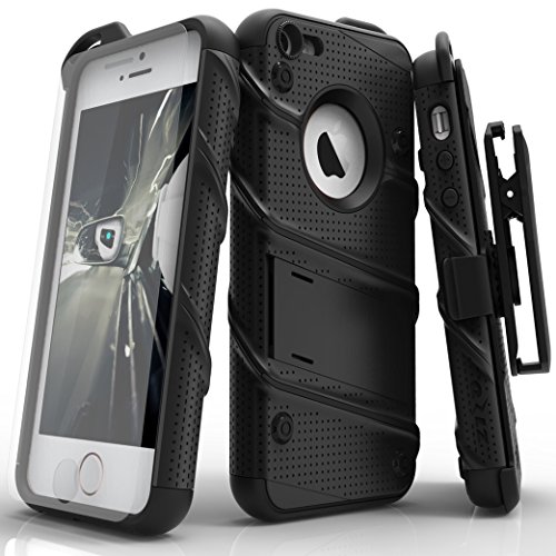 Zizo iPhone SE Case, [Bolt Series] w/ [iPhone SE Screen Protector] Kickstand [12 ft. Military Grade Drop Tested] Holster Belt Clip - iPhone 5s