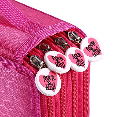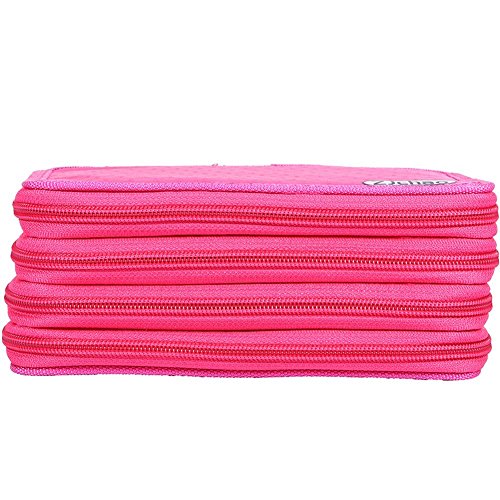 ZJchao 72 Count Slot Matite Colorate Borsa Borsa Borsa Grande Capacità Oxford Multi-strato Matita Organizzatore con Carina Cerniera (Rosa Rosso)