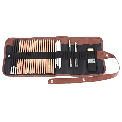 ZJchao Disegno Kit con 18 matite, gomma da cancellare disegno-Prolunga per matite, penne da disegno, con borsa inclusa