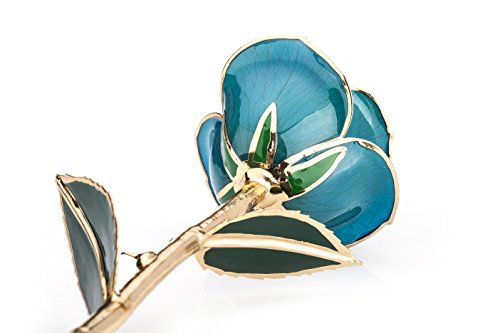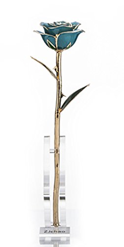 ZJchao, rosa dorata da 24 carati, vera rosa conservabile per sempre e sempre aperta, idea regalo per anniversario di matrimonio, San Valentino, Natale, compleanno, 29 cm di lunghezza, in confezione regalo con supporto trasparente Hellblau