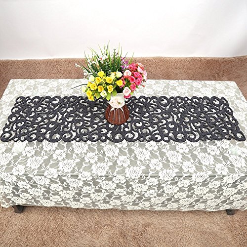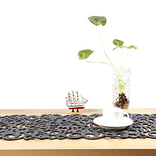 ZJchao Runner da Tavola in Feltro, Motivo Traforato a Fiori, Vintage, Resistente al Calore, Lavabile, 29 x 102cm, per Decorazione della Casa (Grigio Scuro)