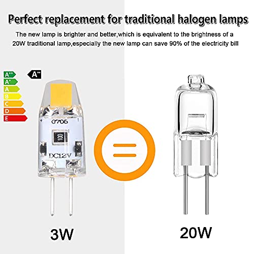✿ Risparmio energetico e alta efficienza: la lampada LED 3W G4 è un sostituto perfetto per le lampade alogene o ad incandescenza. Risparmia il 90% di energia. Può sostituire la lampada alogena G4 20W. La lampadina LED G4 ha un'eccellente conduttività termica e garantisce una buona dissipazione del calore e un'estensione della durata