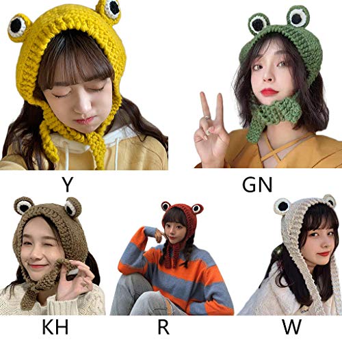✤ Classico grosso uncinetto lavorato a maglia, simpatico cartone animato con grandi occhi a forma di rana, cappello con fascia in tinta unita, taglia unica per la maggior parte delle donne.