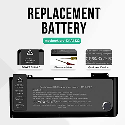 ZJSTRO A1278 A1322 - Batteria per laptop MacBook Pro 13" (metà 2009, metà 2010, inizio 2011, fine 2011, metà 2012) [polimeri di litio 10,95 V 63,5 Wh]