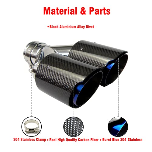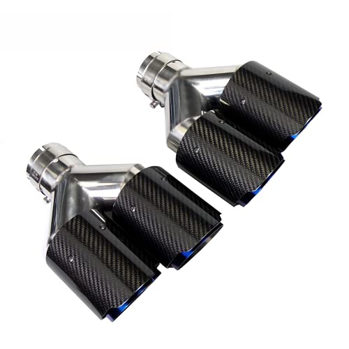 Zjxfff Doppia Punta di Scarico per Auto Universale in Fibra di Carbonio e Acciaio Inossidabile Blu Bruciato a Doppia estremità, per BMW Benz VW Golf Audi
