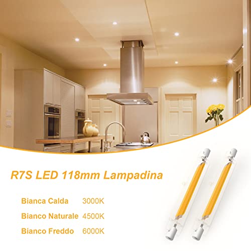 【Luce LED R7S 20W 118mm】R7S LED Lampadina 20W 118mm Bianco Caldo Dimmerabile,6000K 2000LM, LED COB a doppia estremità,con un angolo di diffusione della luce di 360 gradi, garantisce una diffusione uniforme della luce. Il materiale ceramico garantisce una buona trasmissione della luce.