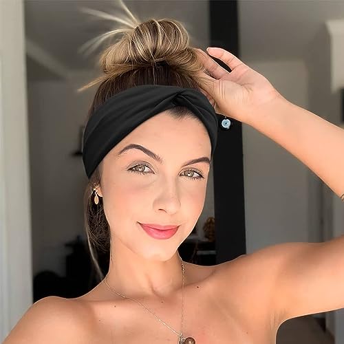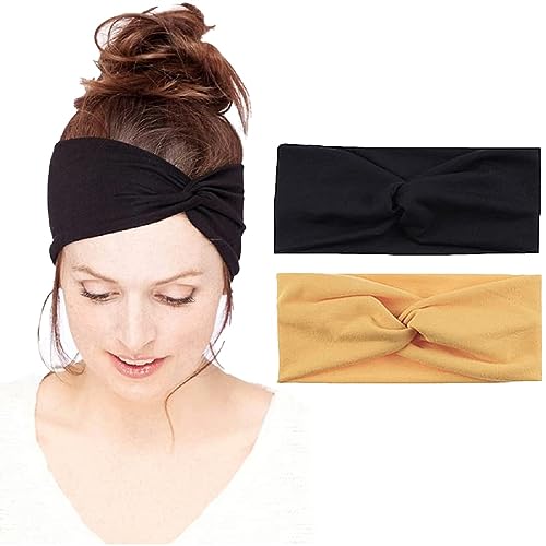ZKGYUS 2 Pezzi Fasce Larghe per Donna Fascia Elastica con Nodo Intrecciato Lady Yoga Allenamento Sport Fascia per Capelli Antiscivolo Fascia Turbante Donna