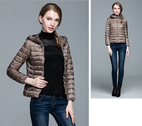 ZKOO Donna Corta Giubbotto Giù Slim Ultraleggeri Giacche di Piumino con Cappuccio Trapuntato Cappotto Autunno e Inverno Cammello
