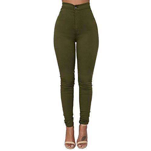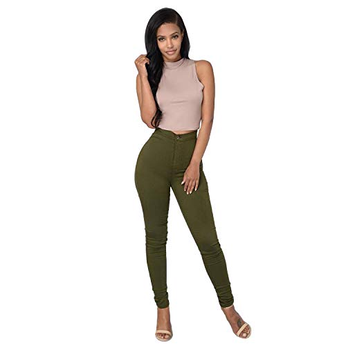 ZKOO Donna A Vita Alta Leggings Elastico Skinny Jeans Pantaloni in Denim Lunghi Matita Pantaloni Verde