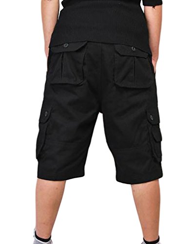 ZKOO Uomo Cargo Pantaloni Corti Shorts da Uomo Cotone Bermuda Pantaloncini Outdoor Spiaggia Pantaloncini con Tasconi Laterali Nero