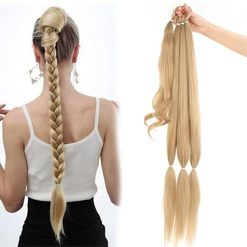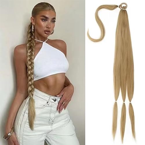 ZKSXOA 1PCS Lunga Estensione Coda di Cavallo, 80cm Lunga Coda di Cavallo Intrecciata con Cravatta Capelli, Coda di Cavallo fai da te Naturale Posticci Sintetico Morbidi per le Donne,Oro chiaro