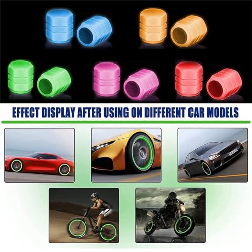 ZKSXOA 25pcs Tappi valvola pneumatici universali per auto, pneumatici fluorescenti per auto, tappi valvole luminosi per auto, copri stelo valvola pneumatico universale per auto moto bici