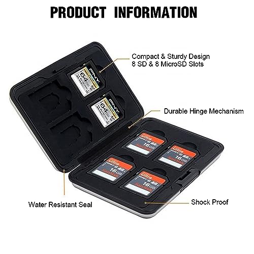 ZKSXOA 16 Scomparti Custodia per Schede di Memoria, 8 Schede SD e 8 Schede Micro SD, per Micro SD, SDXC, SDHC, SD, Resistente all'Acqua, Antiurto (Nero)