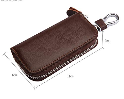 ZKYXZG Caso chiave Portafogli chiave da donna in vera pelle Litchi Porta carte d'identità in pelle di vacchetta con cerniera Portafogli chiave da auto multifunzione da uomo, Caffè