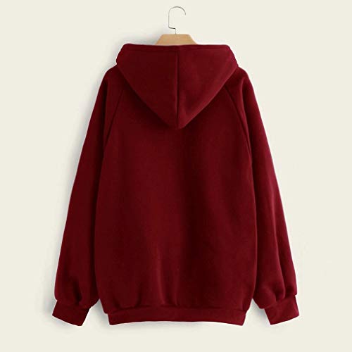 Zldhxyf Felpa con cappuccio, tinta unita, casual, con cappuccio, da donna, a maniche lunghe, sportiva, con cappuccio, per fai da te, morbida e calda, Colore: rosso, S
