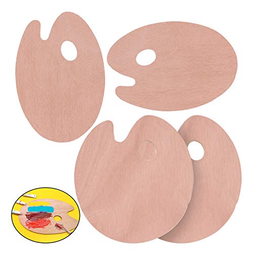 Zliger 4 Pezzi Palette Di Pittura in Legno,Tavolozza in Legno Forma Ovale Tondo Ad Olio Tavolozza Di Miscelazione Con Foro per Il Pollice per Uso Artistico