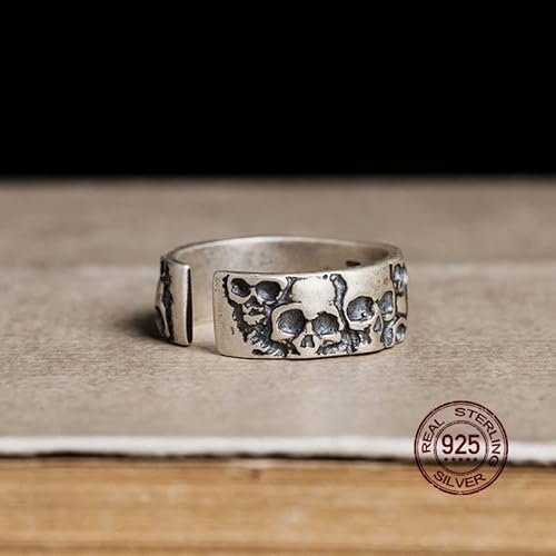 ZLING Anello Teschio Vintage Gotico in Argento Sterling 925 per Uomo Donna Anello Avvolgente Regolabile Gioielli Punk