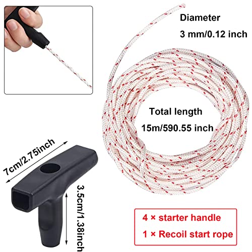 ZLIUTIN Corda di Avviamento a Strappo 4 PCS Fune di Avviamento a Strappo Corda di Avviamento per Tosaerba Maniglia per Avviamento Strappo, per Tosaerba Motosega Tagliabordi 15m 3,0 mm Cavo