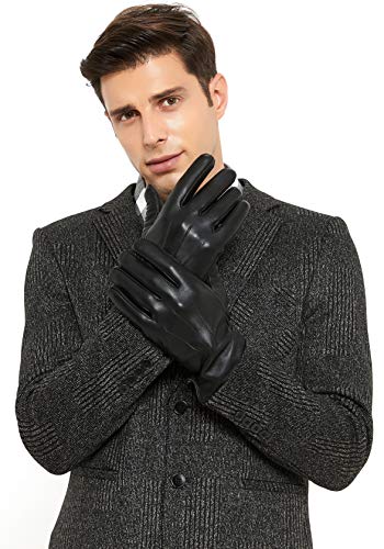 ZLUXURQ Guanti da guida invernali da uomo con touchscreen in pelle di agnello nero morbida foderati in cashmere, comodi e caldi.
