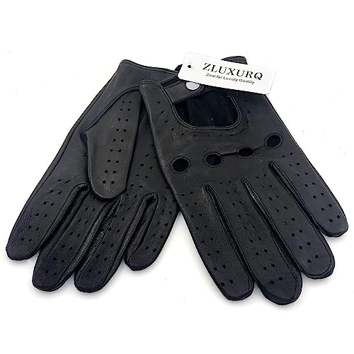 ZLUXURQ Guanti da guida in pelle di pecora da uomo di lusso squisito