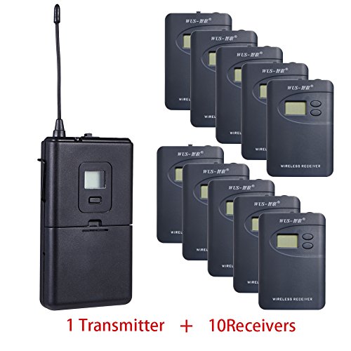 ZLWUS 800R Wireless Tour Guide System, UHF794~806MHz Digitale Audio-Guida - Radio-Guida (1pc Trasmettitore + 10pc Ricevitore) Per Insegnamento Visitare and Consultazione(Grey)