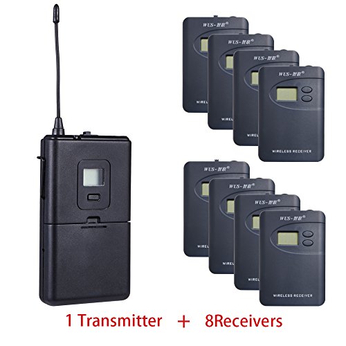 ZLWUS 800R Wireless Tour Guide System, UHF794~806MHz Digitale Audio-Guida - Radio-Guida (1pc Trasmettitore + 8pc Ricevitore) per Insegnamento Visitare And Consultazione(Grey)