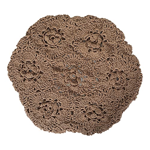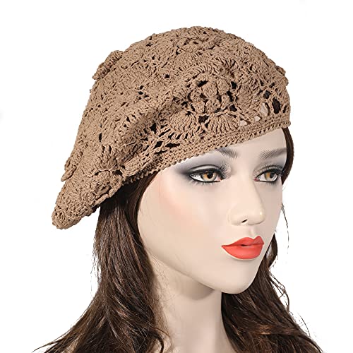 ZLYC Berretto da donna in cotone morbido all'uncinetto lavorato a mano con motivo floreale, Marrone massiccio., Taglia unica