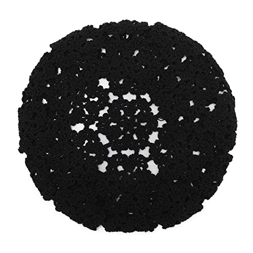 ZLYC Berretto da donna in cotone morbido all'uncinetto lavorato a mano con motivo floreale, Motivo floreale nero., Taglia unica