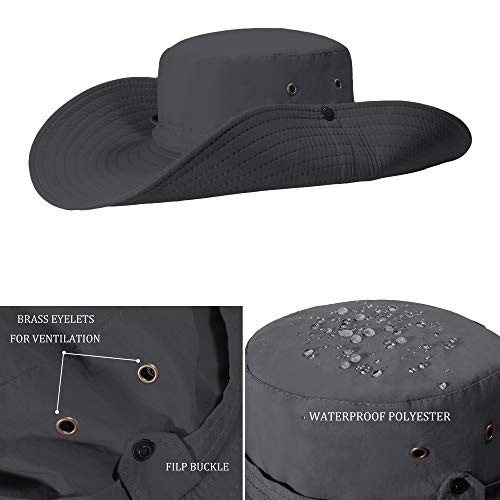 ZLYC - Cappello da pescatore estivo da uomo, con tesa larga, protezione dai raggi UV, Grigio tinta unita, Taglia unica