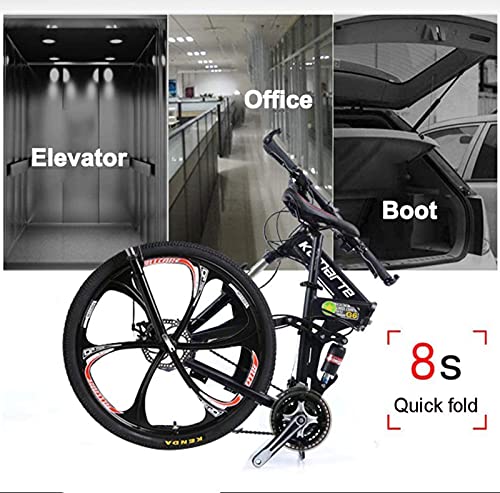 BICI MULTIFUNZIONALE: il telaio pieghevole in acciaio al carbonio spesso è realizzato in materiale solido, il telaio triangolare è stabile e solido, la canna è spessa, il design a doppio assorbimento degli urti anteriore e posteriore per ridurre l'impatto della forza, connettore unico di corrispondenza dei colori, bella atmosfera, tecnologia moderna, ottima fattura, adatta per fuoristrada, chiusura pieghevole pieghevole in alluminio, comoda e veloce!