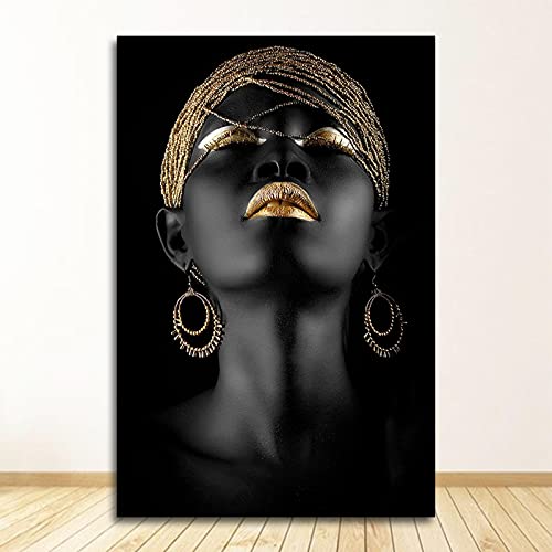 ZMFBHFBH Soggiorno Wall Art Conmplator Donna africana nera Dipinto ad olio su tela Poster e stampe Immagini a parete scandinave 60x90cm (24x35in) con cornice