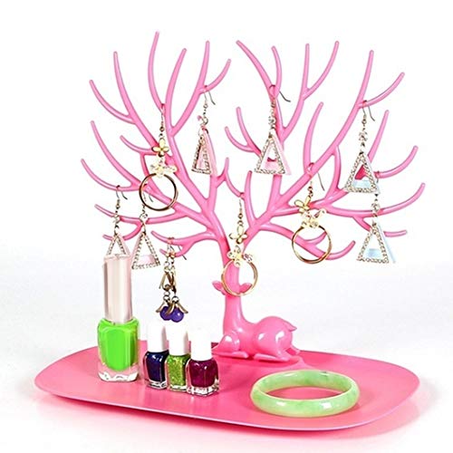 Zmigrapddn Espositore per Gioielli - Ramo di Albero di Cervo Appeso Gioielli Appendiabiti Orecchini Collana Bracciale Anello Display Comò Negozio Organizzatore Rosa