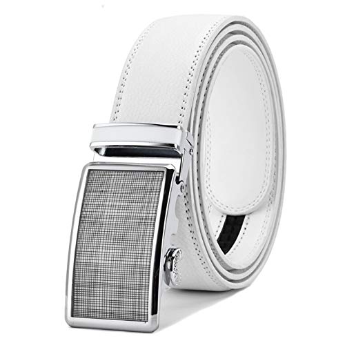 ZMK-720 Cintura Uomo Cintura da Uomo in Fibbia Automatica in Pelle Resistente all'Usura Bianca E Kaki #S6886 (Belt Length: 130cm, Color: White)