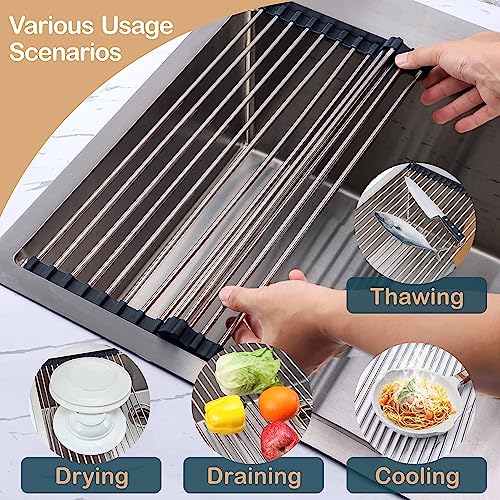 ZMMBOR Scolapiatti da Appoggio, Scolapiatti Pieghevole Sopra il Lavello, Scolapiatti Stendino da Cucina Avvolgibile Rimovibile per il Piano del Lavello in Acciaio inossidabile 43CM*35CM
