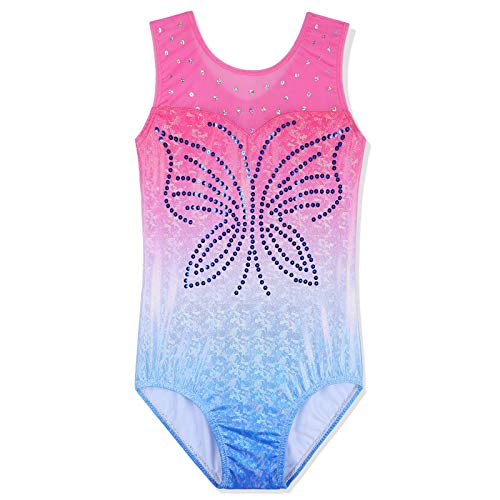 ZNYUNE Ragazza Body Ginnastica Classica senza Maniche con Paillettes 261 Rosa-Blu 6A