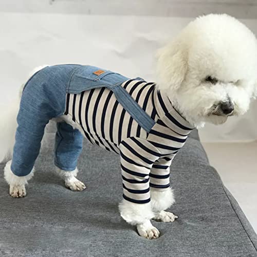 ZNZT Vestiti per Cani Tuta per Cani da Compagnia Sottile Tute in Due Pezzi Finte Salopette Jeans + Top in Maglia Vestiti per Cuccioli Pigiama a Maniche Lunghe per Cani di Piccola Taglia Chihuahua, 16