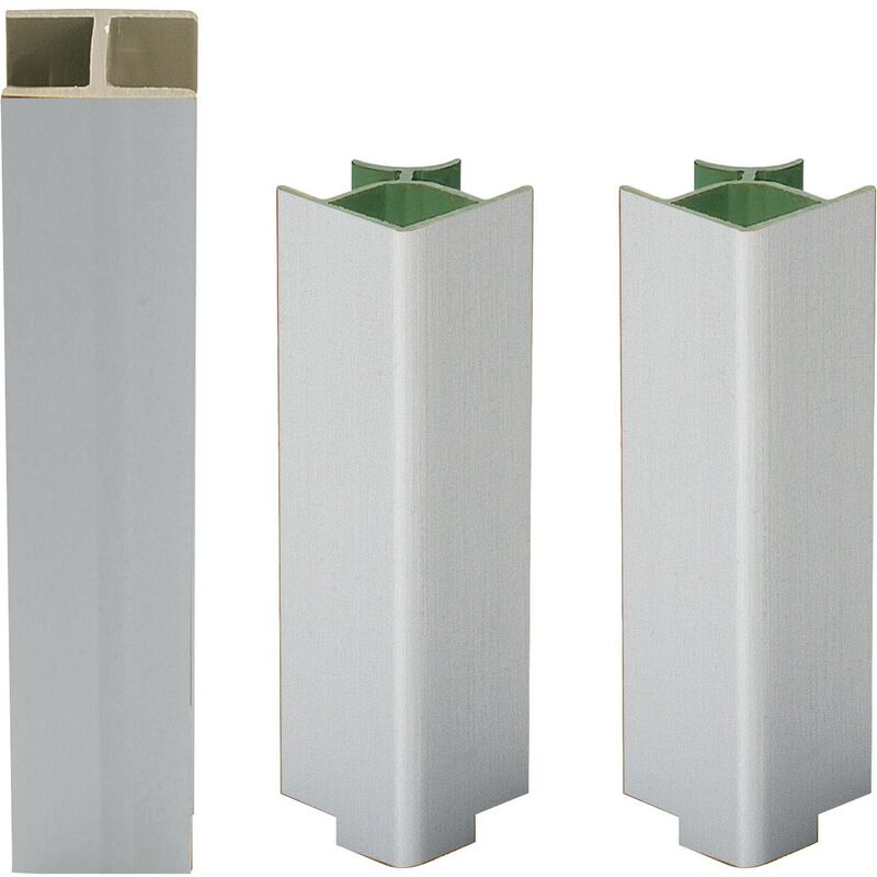 In pvc. composto da 2 angoli 90? e 1 giunzione lineare. per zoccoli di altezza 100mm. colore alluminio